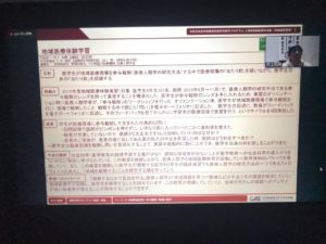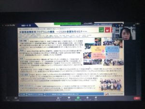 年末の話になりますが,2020年12月15日に鳥取大学ビジョン実現のための「戦略3 人口希薄化地域における地域創生を目指した実践型教育研究の新展開」報告会で,当教室の紙本先生と井上がプレゼンテーションをさせていただきました.紙本先生は,鳥取県日野町黒坂地区で行っている多職種連携教育についてお伝えしました.井上は医学科4年生に文化人類学者の先生方と協働で教育を構築していっている地域医療体験実習についてお伝えしました.どちらも内容も,地域医療教育を行いつつ地域創生にも貢献できるようなものとなっていて,今後も発展的に教育を行っていこうと考えおります.これからも,楽しみつつ地域医療教育に取り組んでいきたいと思いますので,よろしくお願いします!(井上)
