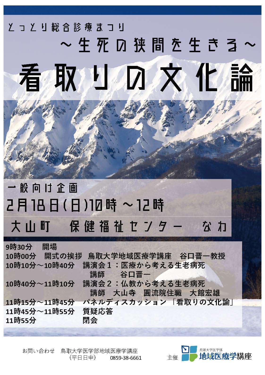 【お知らせ とっとり総合診療まつり 2月18日10時〜シンポジウム「看取りの文化論」@大山町】