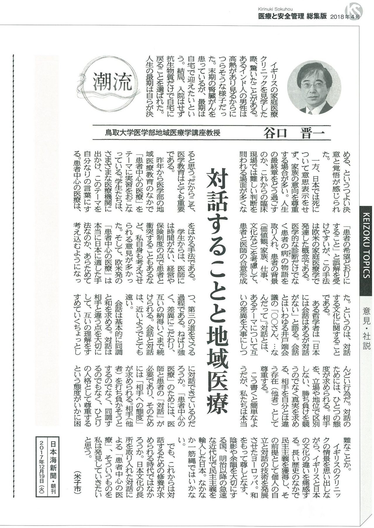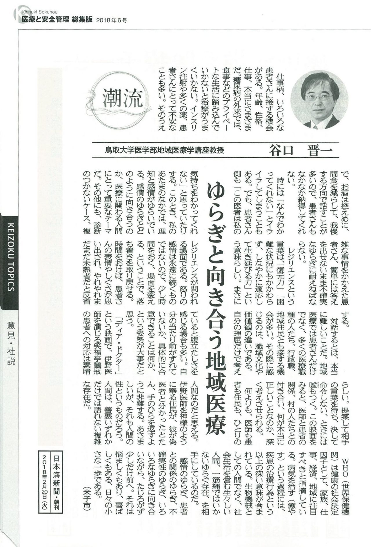 134月 2018 【切り抜き速報 医療と安全管理総集版】に潮流の記事が掲載されました 【切り抜き速報 医療と安全管理総集版】04・06 全国85紙の新聞記事から医療の「今」を読み解く 日本海新聞 潮流の記事が掲載されました。 BY tottori-idai-main 0