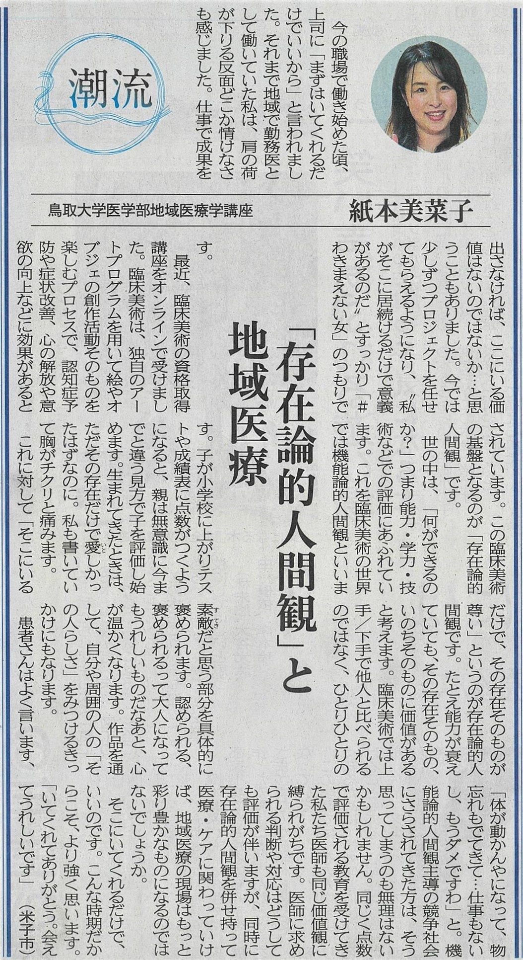 Home / Blog / 【日本海新聞】潮流 「存在論的人間観」と地域医療