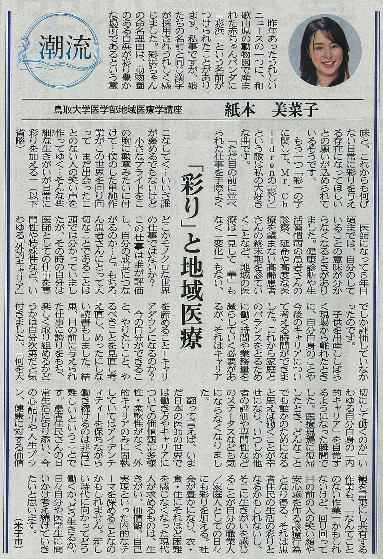 【日本海新聞】潮流 「彩り」と地域医療