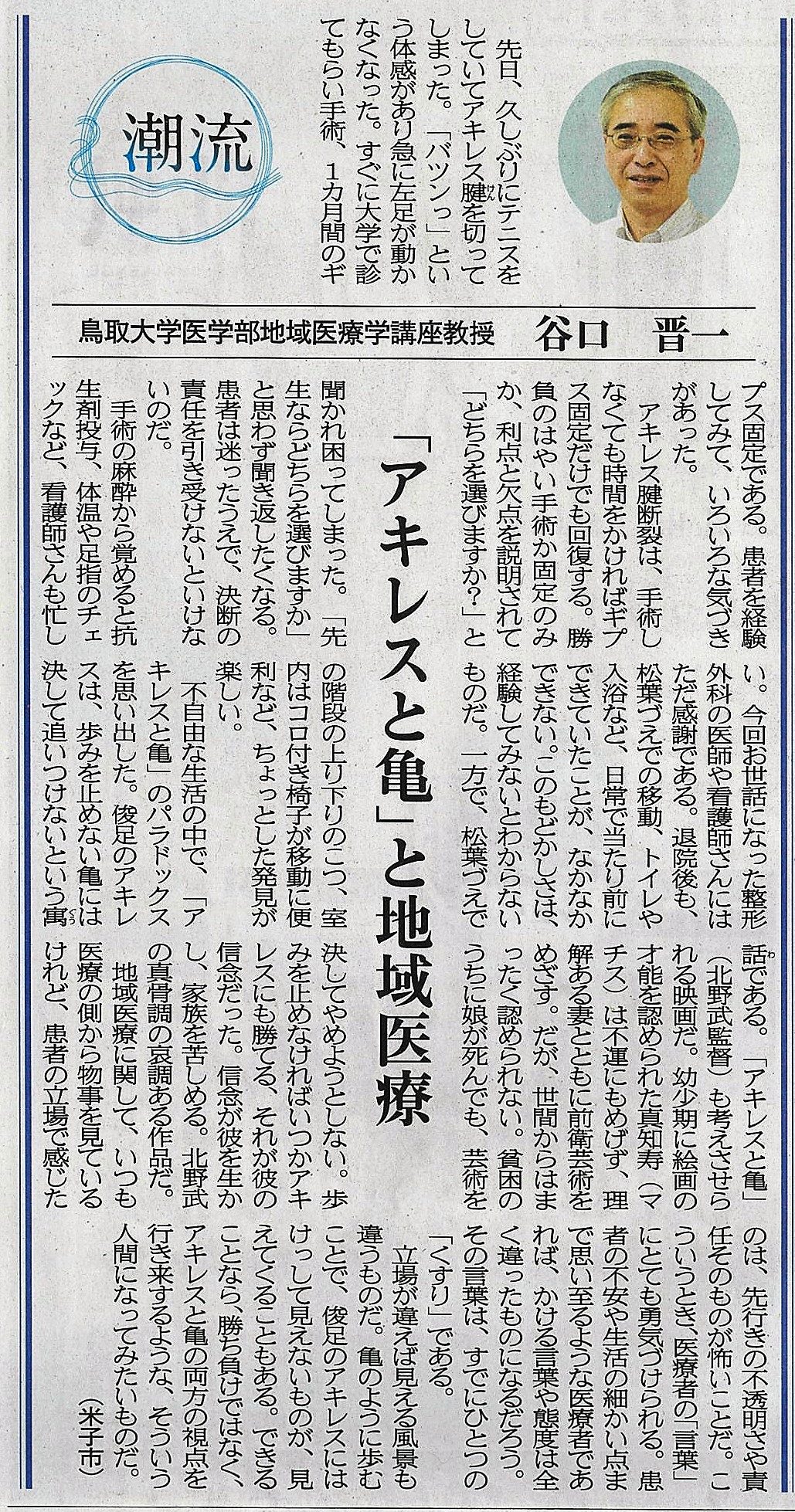 183月 2020 【日本海新聞】潮流 『アキレスと亀』と地域医療 2020年3月14日の日本海新聞17面 潮流に掲載されました。 『アキレスと亀』と地域医療 谷口 晋一 BY tottori-idai-main 0
