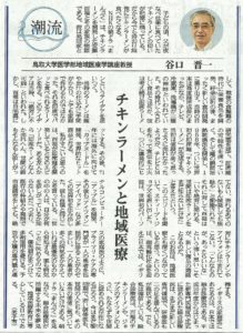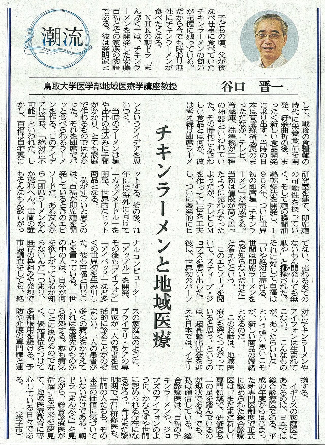 113月 2019 【日本海新聞】潮流 チキンラーメンと地域医療 2019年3月10日の日本海新聞19面 潮流に掲載されました。 チキンラーメンと地域医療 谷口 晋一 BY tottori-idai-main 0