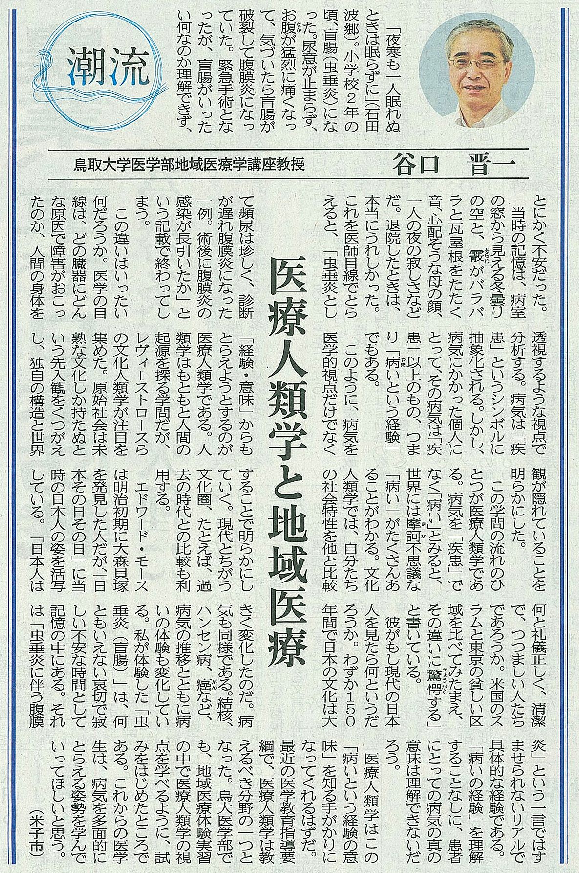 1910月 2018 【日本海新聞】潮流 医療人類学と地域医療 2018年10月18日の日本海新聞 潮流に掲載されました。 「医療人類学と地域医療」 谷口晋一 BY tottori-idai-main 0