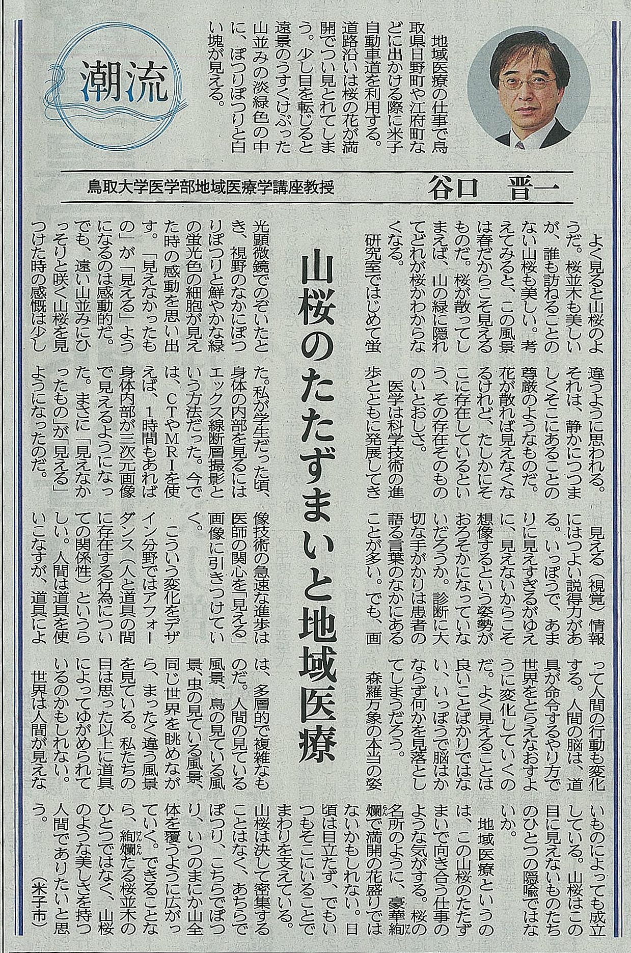 Home / Blog / 【日本海新聞】潮流 山桜のたたずまいと地域医療