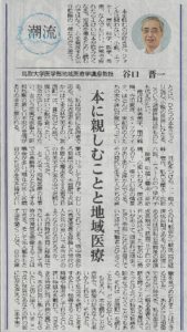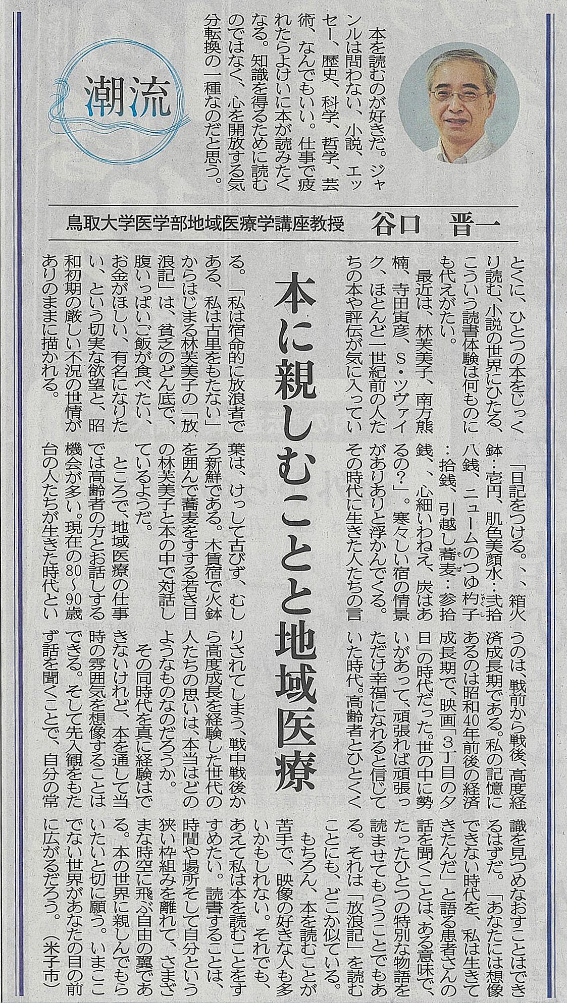 1612月 2020 【日本海新聞】潮流 本に親しむことと地域医療 2020年12月13日 日本海新聞21面 潮流に掲載されました。 本に親しむことと地域医療 谷口 晋一 BY tottori-idai-main 0
