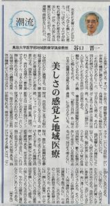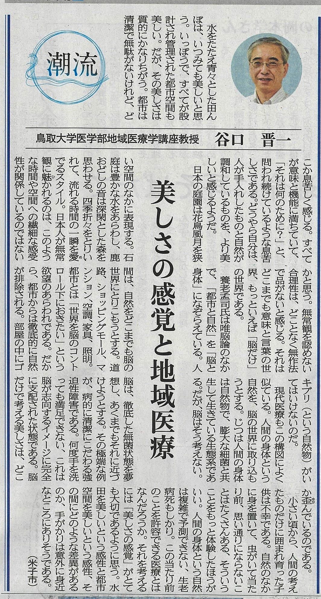 128月 2020 【日本海新聞】潮流 美しさの感覚と地域医療 2020年8月9日の日本海新聞8面 潮流に掲載されました。 美しさの感覚と地域医療 谷口 晋一 BY tottori-idai-main 0