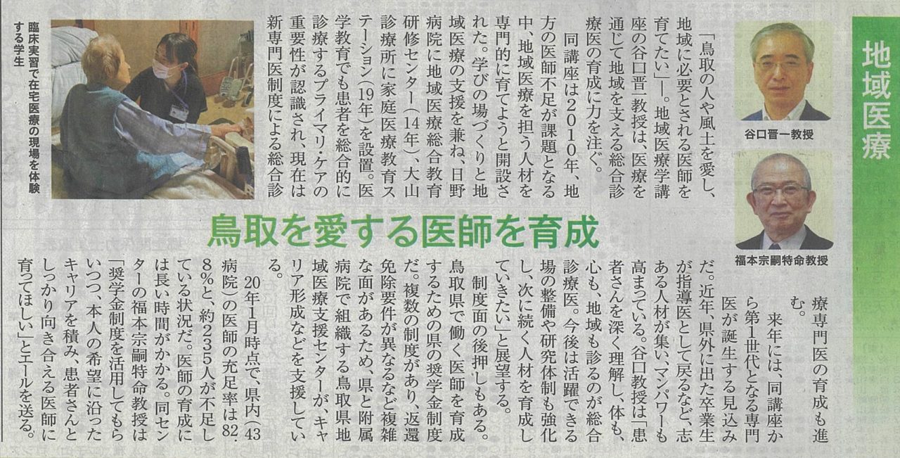 255月 2021 【日本海新聞】鳥取大学医学部75周年 2021年5月22日の日本海新聞15面 に「鳥取大学医学部75周年」の記事が掲載されました。 地域医療 「鳥取を愛する医師を育成」 BY tottori-idai-main 0