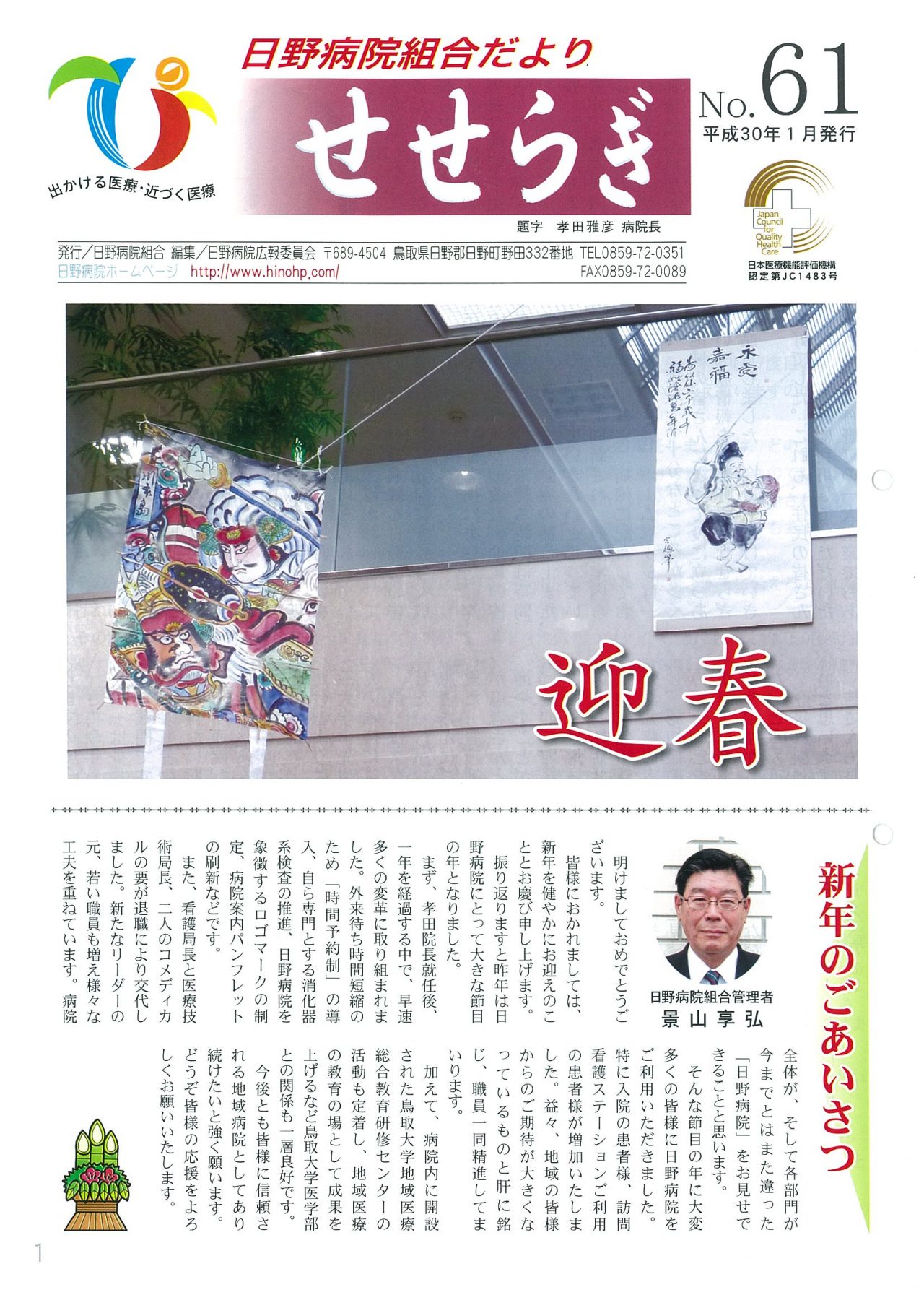 Hey Buddy!, I found this information for you: "【日野病院組合だより せせらぎ】No.61". Here is the website link: https://cbfm.med.tottori-u.ac.jp/blog/%e3%80%90%e6%97%a5%e9%87%8e%e7%97%85%e9%99%a2%e7%b5%84%e5%90%88%e3%81%a0%e3%82%88%e3%82%8a%e3%80%80%e3%81%9b%e3%81%9b%e3%82%89%e3%81%8e%e3%80%91no-61/. Thank you.