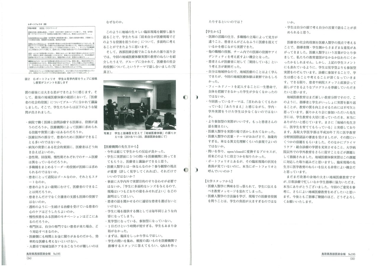203月 2019 【鳥取県西部医師会報】H30年度「地域医療体験」振り返り会 鳥取県西部医師会報 平成31年3月 No.195 掲載 平成30年度「地域医療体験」の振り返り会(2018/11/20西部医師会館) 谷口 晋一 BY tottori-idai-main 0