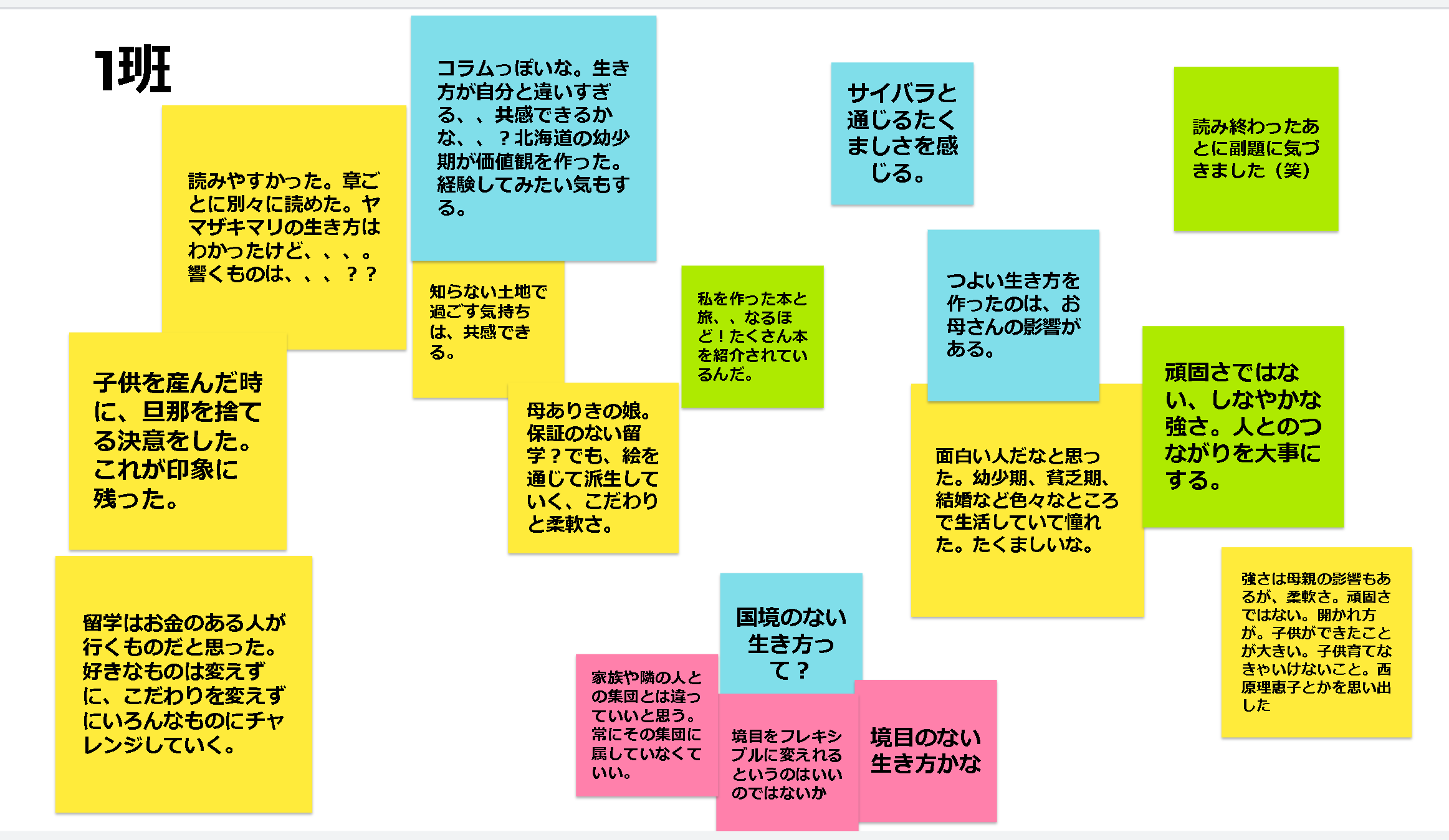 テルマエ・ロマエの作者で、 コスモポリタンを地でいくヤマザキマリさんの生き方。私は、 その破天荒で腹のすわった生き方に魅かれて、この本を紹介した。 でも、読書会での反応は、予想外のものだった。「 あまりピンとこない」「共感しづらい」「 生き方を押し付けないでほしい」と。そっか、「 国境を越えなさい」というちょっと断定的な言いぶりも、 確かにあるなと思い返した。いっぽうで「 昭和のミーハーおばちゃん」「頑固というよりたくましい柔軟性」 といったナルホドなコメントや、「 国境をこえる生き方はそもそもないのでは?」という、 うがった意見もあがった。そこから、 自分のコミュニテイの文化の中に居続けることのメリット・ デメリットの議論になり、 日野や大山で一生暮らしてきた人たちが必ずしも不幸ではないので は、いやいや、 自分世界だけではなく別の世界もあると認識しているのが大事など 、いろいろな意見がでた。「心の国境をこえるという意味では、 国内の違う文化圏も同じ」であり、国境という言葉から、 国の境目でなく、他者との境、 エヴァンゲリオンのATフィールドも連想されて、 議論はさらに広がっていった。個人的には、 昭和の学生運動のころの大きな物語を語る時代のなかで育ったノス タルジーという言葉で、なるほどノスタルジー成分もあって、 魅かれたんだなと思った。