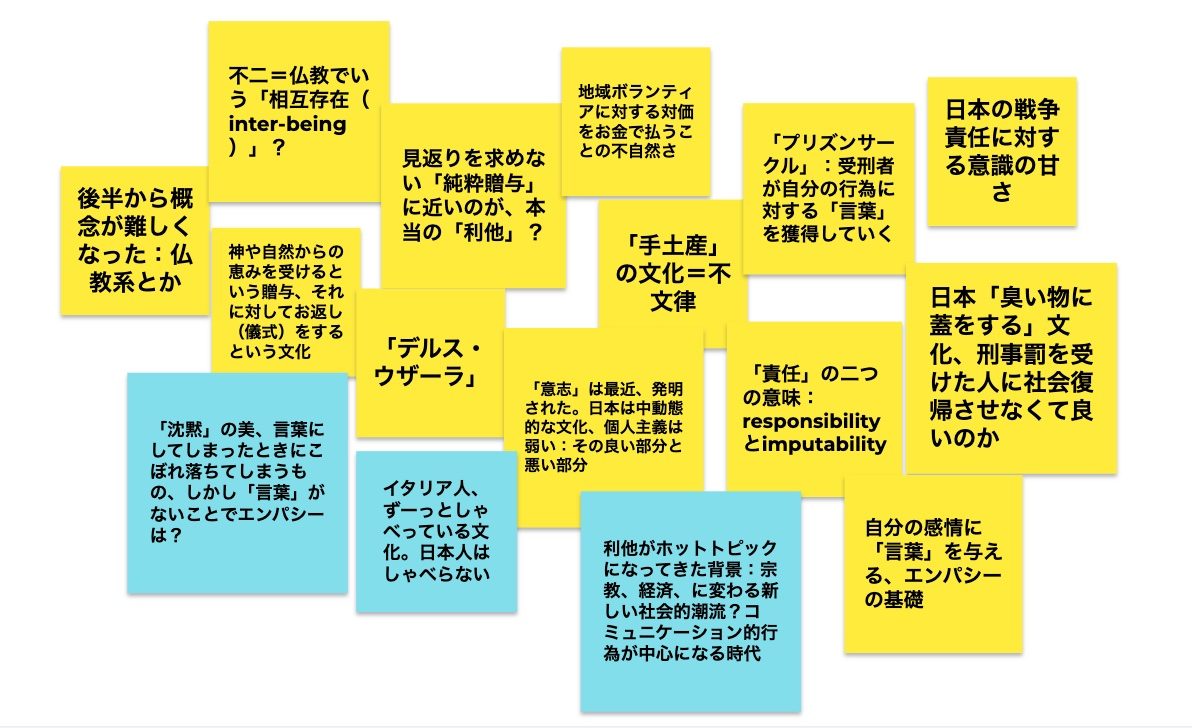 ・「利他」がホットトピックになってきた背景には、宗教・経済に代わる新しい社会的潮流があるのか?(共感など、コミュニケーション的行為が中心になる時代)