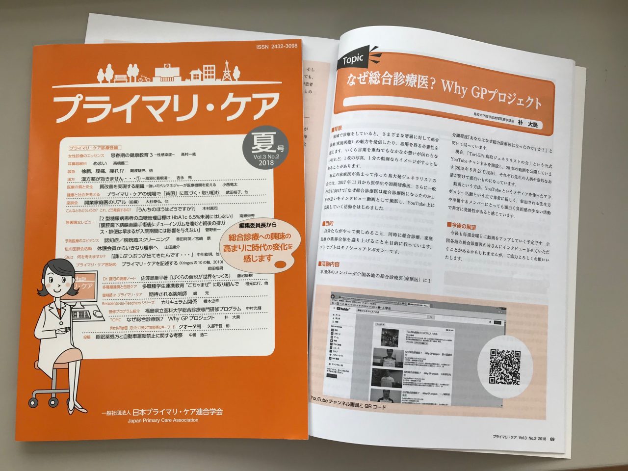 2018年夏号のプライマリ・ケア連合学会実践誌に朴の行なっている「なぜ総合診療医?Why GPプロジェクト」の活動が掲載されました!