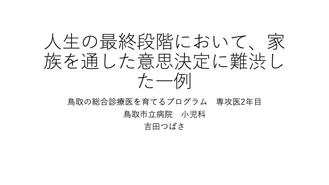 このたび『人生の最終段階において、家族を通した意思決定に難渋した一例』のポートフォリオを発表し、優秀賞をいただきました。初めて書いたポートフォリオで、右も左も分からず、指導医の先生方に手取り足取り教えていただきながら何とか形にしたものでした。そのため、受賞に一番驚いたのは私だと思いますし、今でも信じられません(笑)。一方で、症例自体は短期間の経験でしたが、主治医を務める中で板挟みになったため、そのときの苦労が報われたような気がしています。