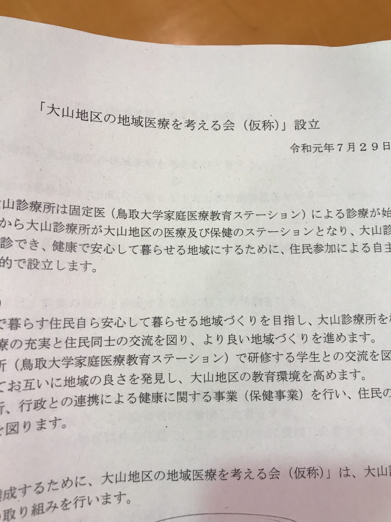 鳥取大学地域医療学講座が中心になって新しく設立された大山家庭医療教育ステーションのある地区で、この度”大山地区の地域医療を考える会”が発足しました!