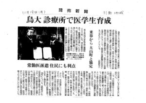 Hey Buddy!, I found this information for you: "大山町との協定締結式が読売新聞にも取り上げられました". Here is the website link: https://cbfm.med.tottori-u.ac.jp/blog/%e5%a4%a7%e5%b1%b1%e7%94%ba%e3%81%a8%e3%81%ae%e5%8d%94%e5%ae%9a%e7%b7%a0%e7%b5%90%e5%bc%8f%e3%81%8c%e8%aa%ad%e5%a3%b2%e6%96%b0%e8%81%9e%e3%81%ab%e3%82%82%e5%8f%96%e3%82%8a%e4%b8%8a%e3%81%92%e3%82%89/. Thank you.