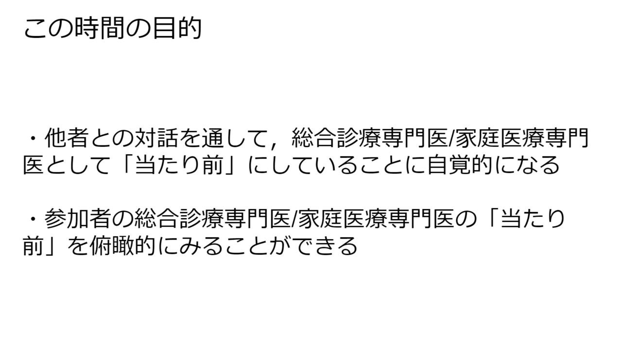112月 2022 家庭医療学冬期セミナーでワークショップを行いました 2022年2月5日に,若手医師のための家庭医療学冬期セミナー(日本プライマリ・ケア連合学会)にて『家庭医としての「あたりまえ」をみなおす~体験型学習と対話の中で楽しく学ぶ、家庭医にとらわれている自分を解放せよ~』というテーマでワークショップを行ってきました.2021年11月頃から,鳥取で総合診療の研修に関わっている専攻医・指導医の先生方と対話を重ねながら,準備を進めてきました.当日は2040年の未来から総合診療専門医/新家庭医療専門医のコンピテンシーを考えるワークを参加者のみなさんと一緒に行いました.普段当たり前すぎてじっくり眺めたことがない(と思われる)コンピテンシーについて考える事を通して,参加者のみなさんがそれぞれ大事にしているあり方を自覚することができる時間になったのではないかと感じています.また,チームでこのワークショップを企画するなかで,講師として参加した専攻医・指導医の先生方の当たり前にも気づくことができたなあとも感じています.今回の企画は,専攻医の先生方の読書会からきっかけをもらっています.そんなワークショップを今後も企画していくことで,自分たちの考えを深めていきたいと思います.(井上) BY tottori-idai-main 0