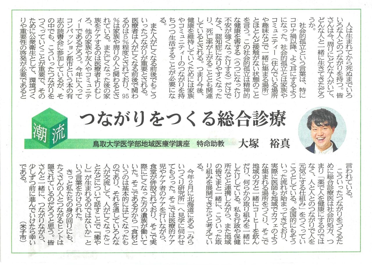 日本海新聞【潮流】に掲載されました