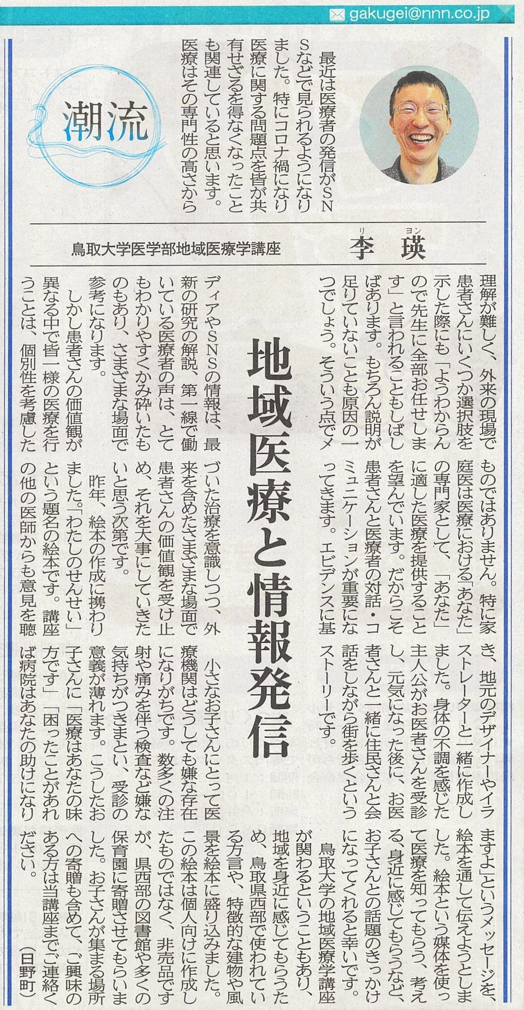 日本海新聞【潮流】地域医療と情報発信