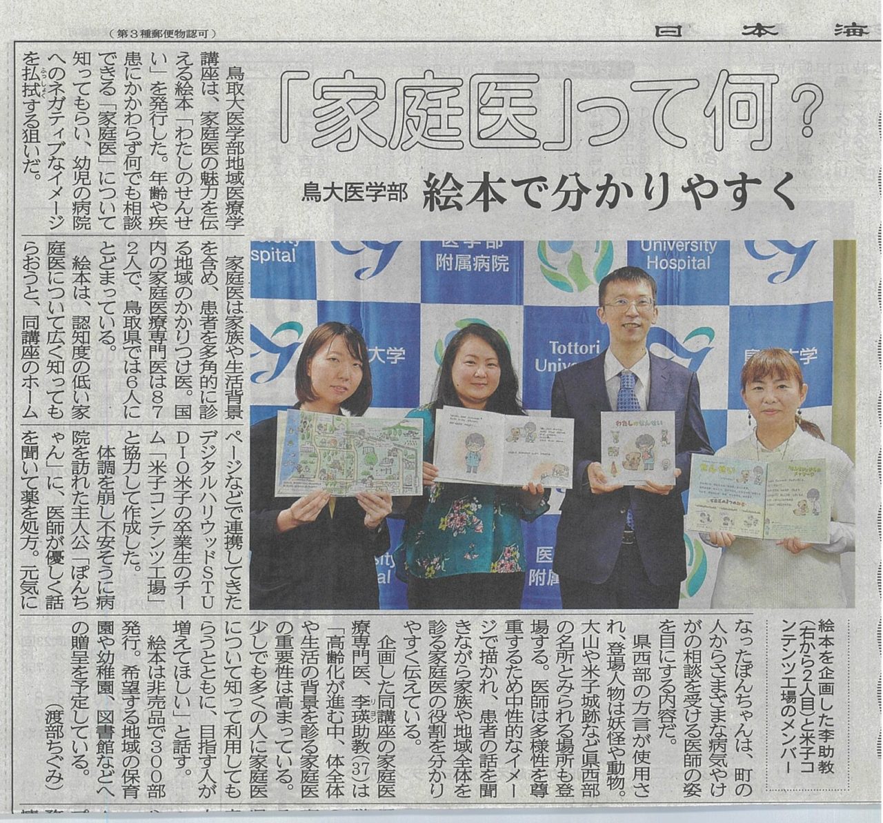 110月 2021 日本海新聞に掲載されました! 「家庭医」って何? ~絵本で分かりやすく~ 9/17に行われた絵本制作発表の様子が 10月1日(金)の日本海新聞16面に掲載されました。 BY tottori-idai-main 0