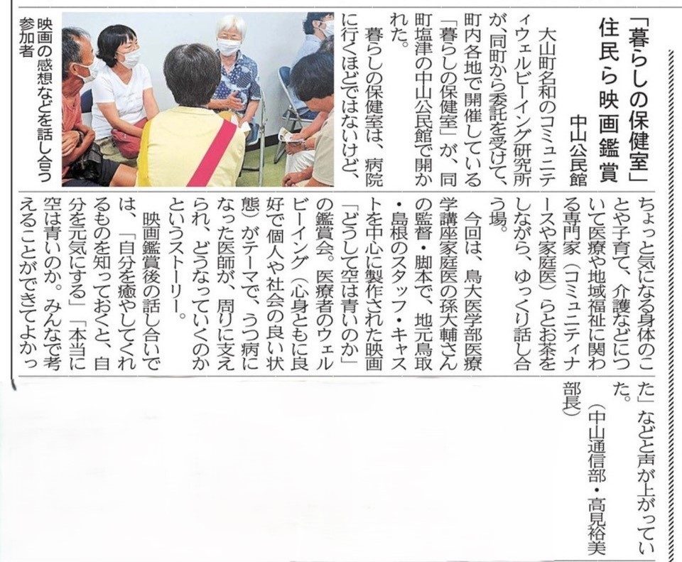 『暮らしの保健室』住民ら映画鑑賞 中山公民館