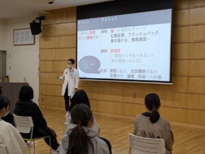 令和7年1月8日、日野学園6〜9年生の45名と教職員対象に「教科書にのっていない違法薬物の話」の授業を行いました。