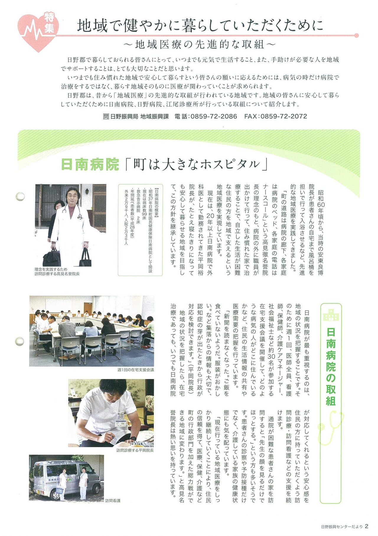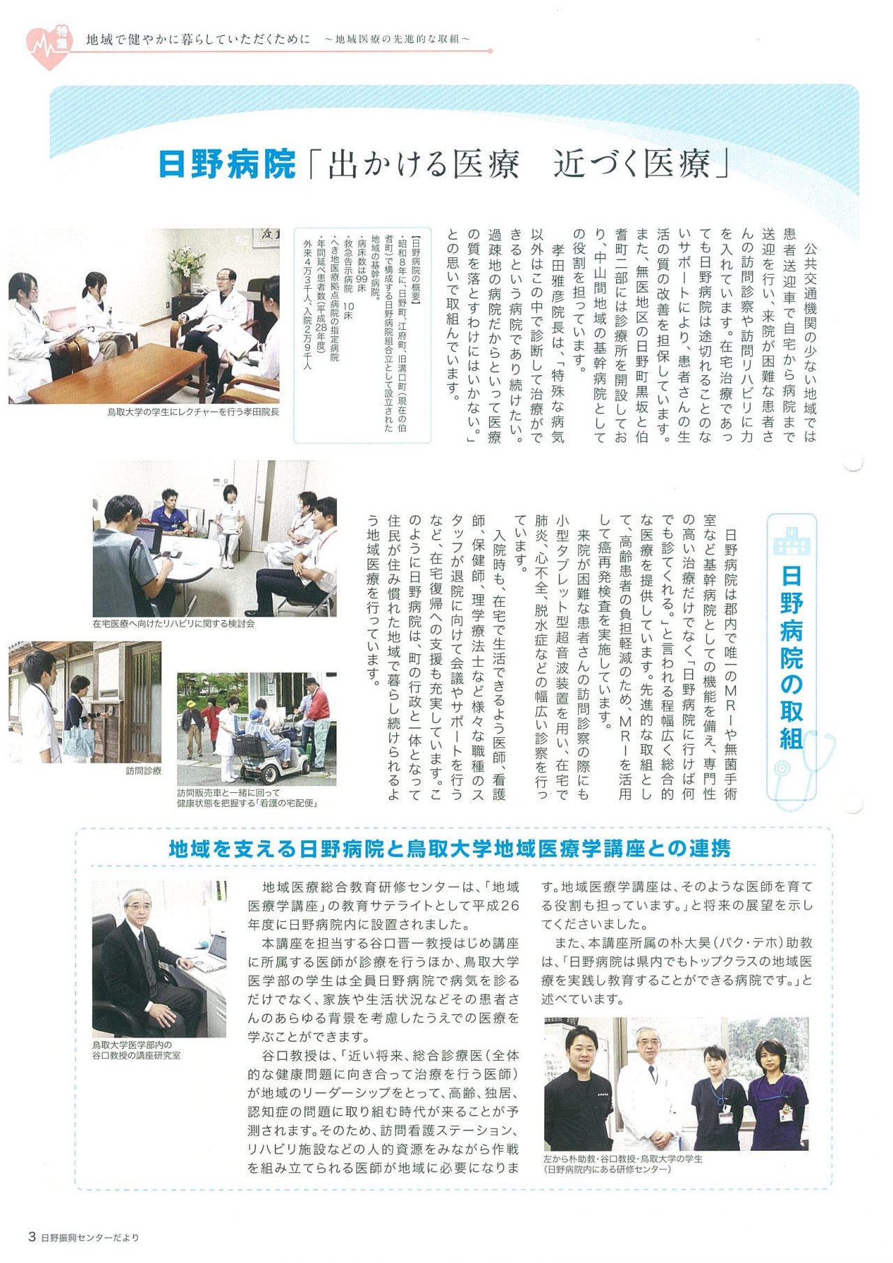 315月 2018 日野振興センターだよりno.20 【特集】地域で健やかに暮らしていただくために ~地域医療の先進的な取組~ 日野病院と地域医療学講座の連携が紹介されました。 BY tottori-idai-main 0