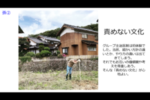 今年度はじまったものの、コロナ禍で飲み会も開けない、ということで、総合診療科として勤務する日野病院のチームの飲み会をzoomで開催しました。チームとして医療をやっていく上での気づきやとまどいを語り合い、さらにはチームを表す写真をphotovoiceとして紹介しあいました。
