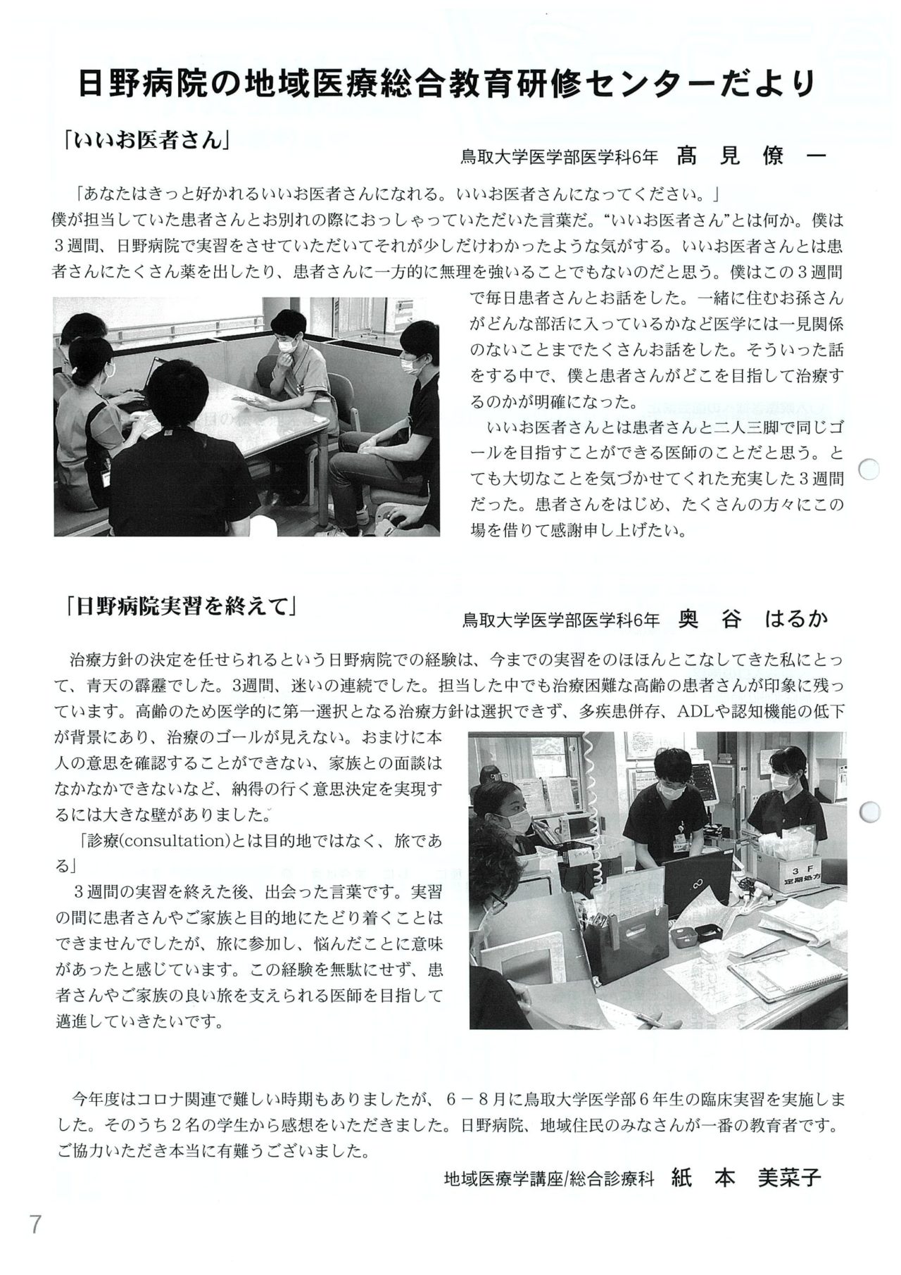 239月 2020 日野病院組合だより せせらぎNO.69に掲載されました 日野病院組合だより せせらぎno.69 「日野病院の地域医療総合教育研修センターだより」 日野病院で実習をした学生の感想が掲載されました! BY tottori-idai-main 0