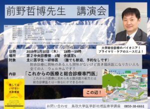 本日、18時から筑波大学附属病院副病院長/総合診療グループ長の前野哲博教授が鳥取大学に来られます。