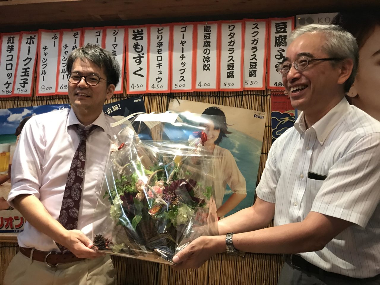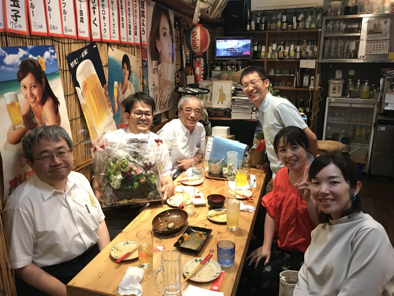 149月 2019 涌波先生の送別会を行いました 涌波先生の10月からの移動を前に送別会を行いました。大学や日野病院でバリバリと仕事をしてくださった涌波先生が移動となります。教室員ともゆかりのある沖縄料理屋で今後の展望や今までの勤務の思い出などを語ってもらいました。涌波先生、10月からの新天地でも頑張ってください!(李) BY tottori-idai-main 0