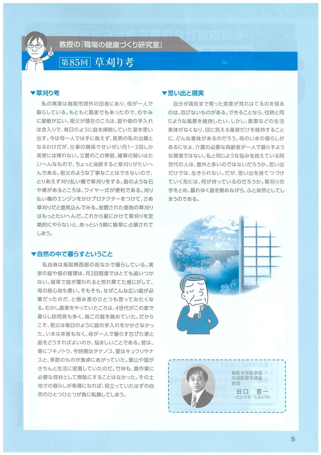 286月 2021 社会保険とっとりVOL.602 2021.6月号に掲載されました 社会保険とっとりVOL.602 2021.6月号 教授の『職場の健康づくり研究室』第83回 草刈り考 BY tottori-idai-main 0