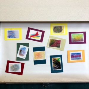 最後にみなさんの作品を前に掲示すると「おお~きれいだな!」と歓声があがりました。おひとりおひとりの作品を眺めて、お互いにいいな~と思うところを話し合ったり、普段のコロナ対策のお話しなども聴かせていただき、楽しい時間を過ごしました 。