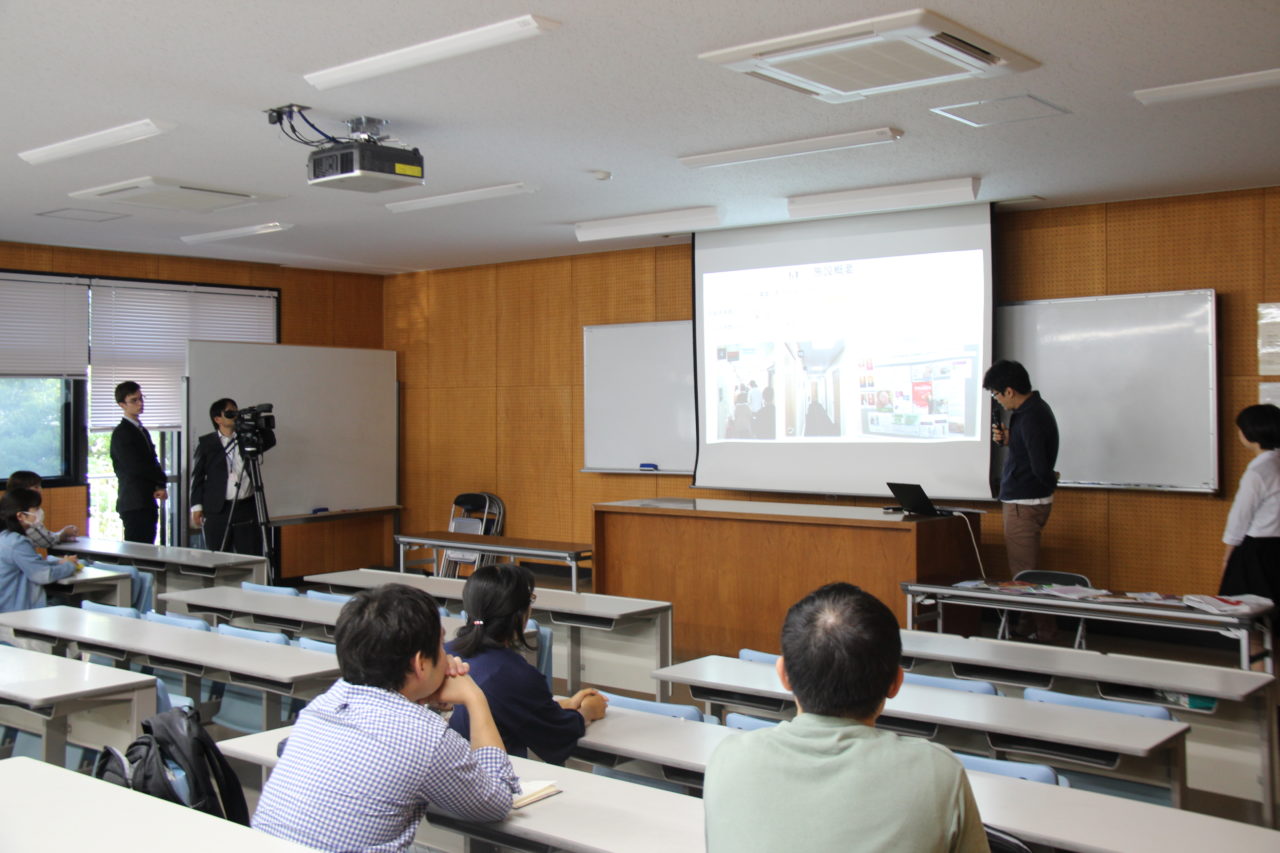 発表会当日は地元テレビ局の取材もあって学生たちは少し緊張したかもしれません。