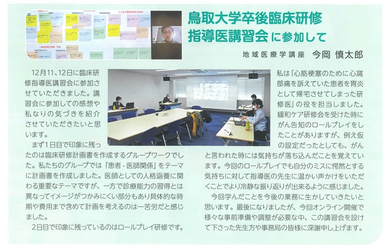 44月 2022 鳥取大学医学部付属病院【研修センターだより】に今岡先生の記事が掲載されました。 鳥取大学医学部付属病院 研修センターだよりVol.40 2022.3 BY tottori-idai-main 0