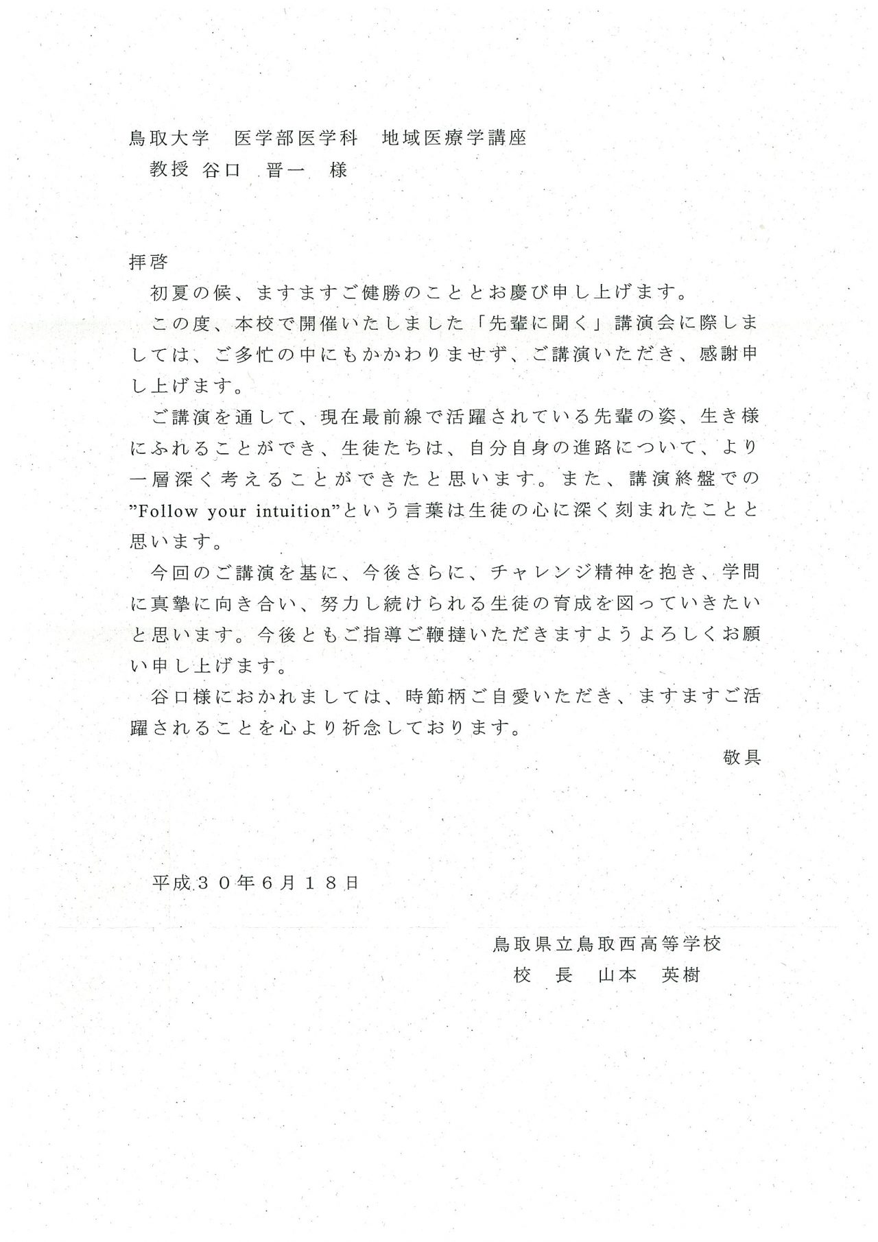 鳥取西高校で「先輩に聞く」講演会 2018.6.14