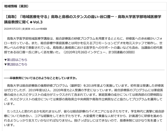 m3.comで谷口教授のインタビュー記事が3回に渡り連載されます。