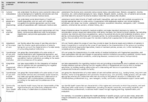 Table 3. 都市部の家庭医/総合診療医のコンピテンシー(最終リスト)