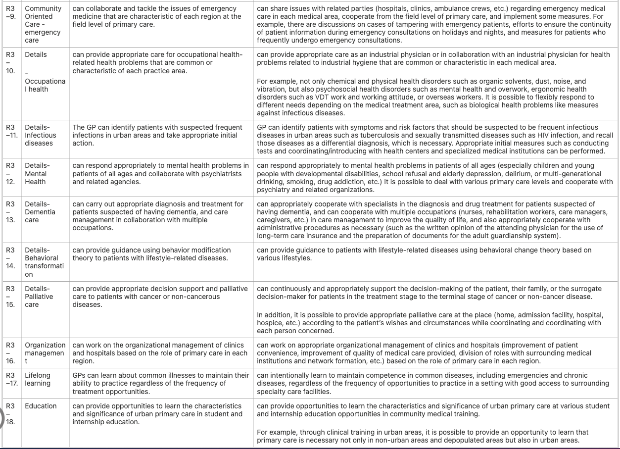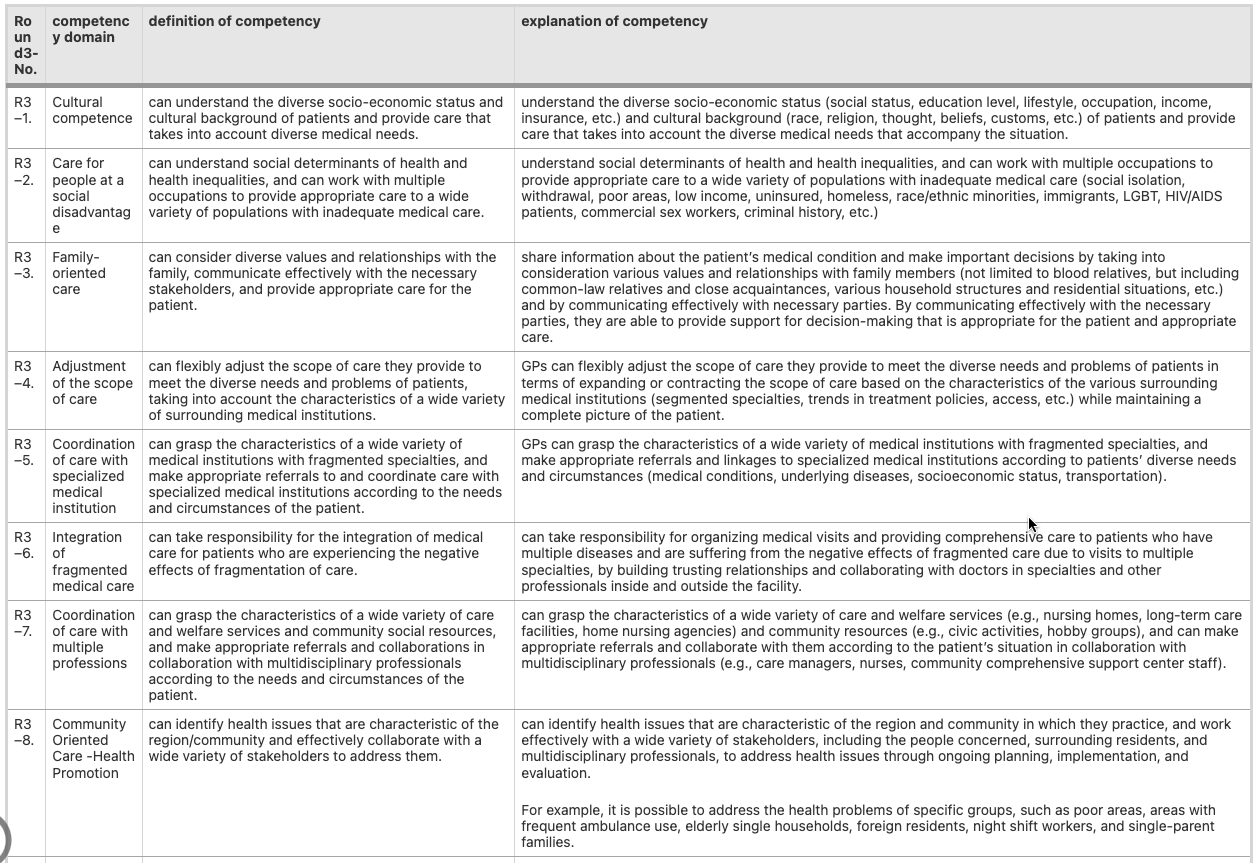 Table 3. 都市部の家庭医/総合診療医のコンピテンシー(最終リスト)