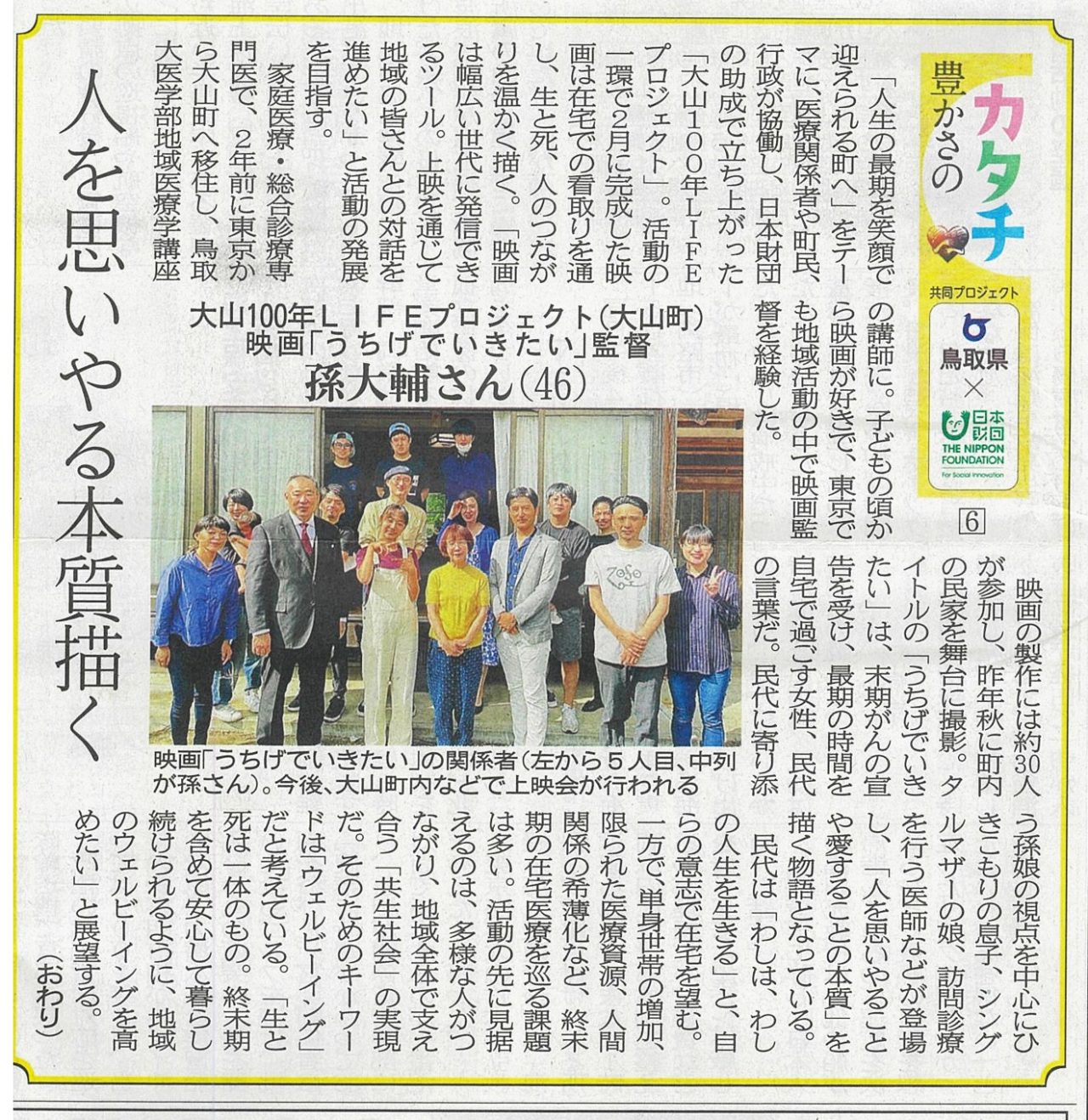 264月 2022 映画「うちげでいきたい」/孫先生の記事が日本海新聞に掲載されました。 2022年4月26日(火)日本海新聞25面に孫先生の記事が掲載されました。 BY tottori-idai-main 0