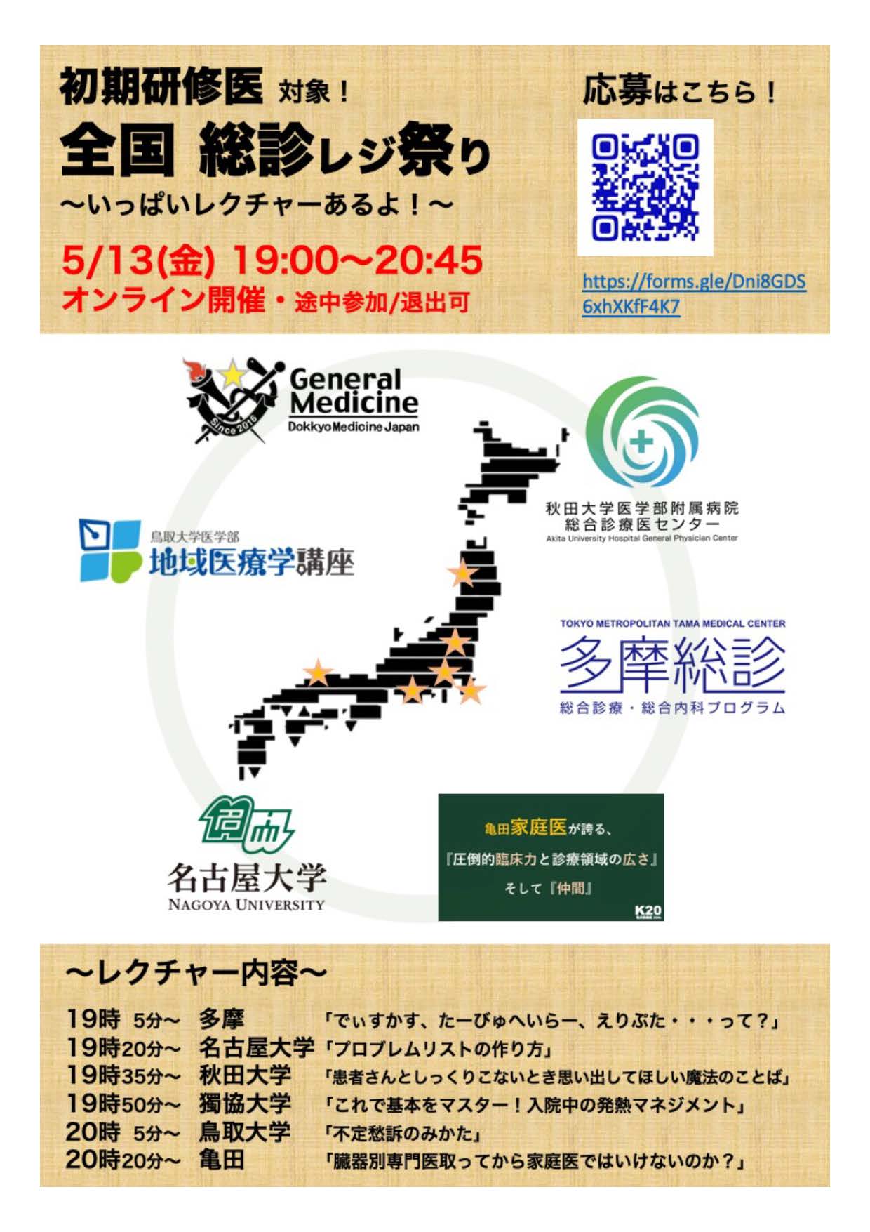 274月 2022 「全国 総診レジ祭り 〜いっぱいレクチャーあるよ!〜」を行います。 5月13日の夜に研修医の方対象に県外の機関と合同で「全国 総診レジ祭り 〜いっぱいレクチャーあるよ!〜」を行います。 鳥取からは「不定愁訴のみかた」ということで現在鋭意作成中です! 救急外来などで「どうしよう?」と思うような人の診察をする時に少し楽な気持ちで診察できるようにするmessageを散りばめていくつもりです。 他の施設でも明日からの診療に役立つような内容がたくさんありますので、ぜひ奮ってご参加ください。 応募は下のリンクからも可能です。 https://forms.gle/Dni8GDS6xhXKfF4K7 よろしくお願いします! (大塚 裕眞) BY tottori-idai-main 0