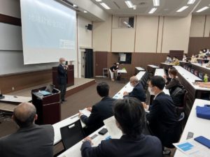 地域医療学教室・谷口教授、医学科長・海藤先生、地域医療支援センター福本先生・紙本先生、卒後臨床研修センター・山田先生、鳥取県福祉保健部医療政策課医療人材確保室・福井室長が挨拶されました。
