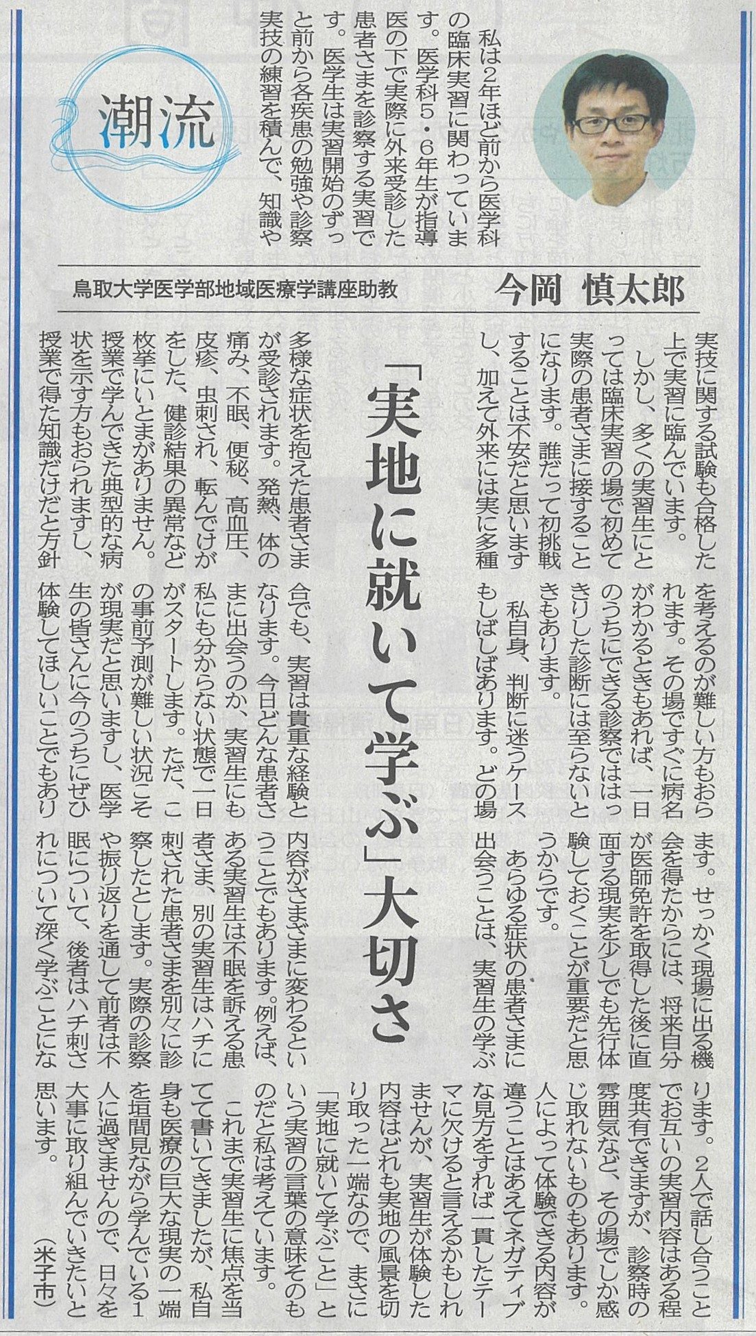 Hey Buddy!, I found this information for you: "日本海新聞【潮流】に掲載されました". Here is the website link: https://cbfm.med.tottori-u.ac.jp/blog/20220920imaoka/. Thank you.