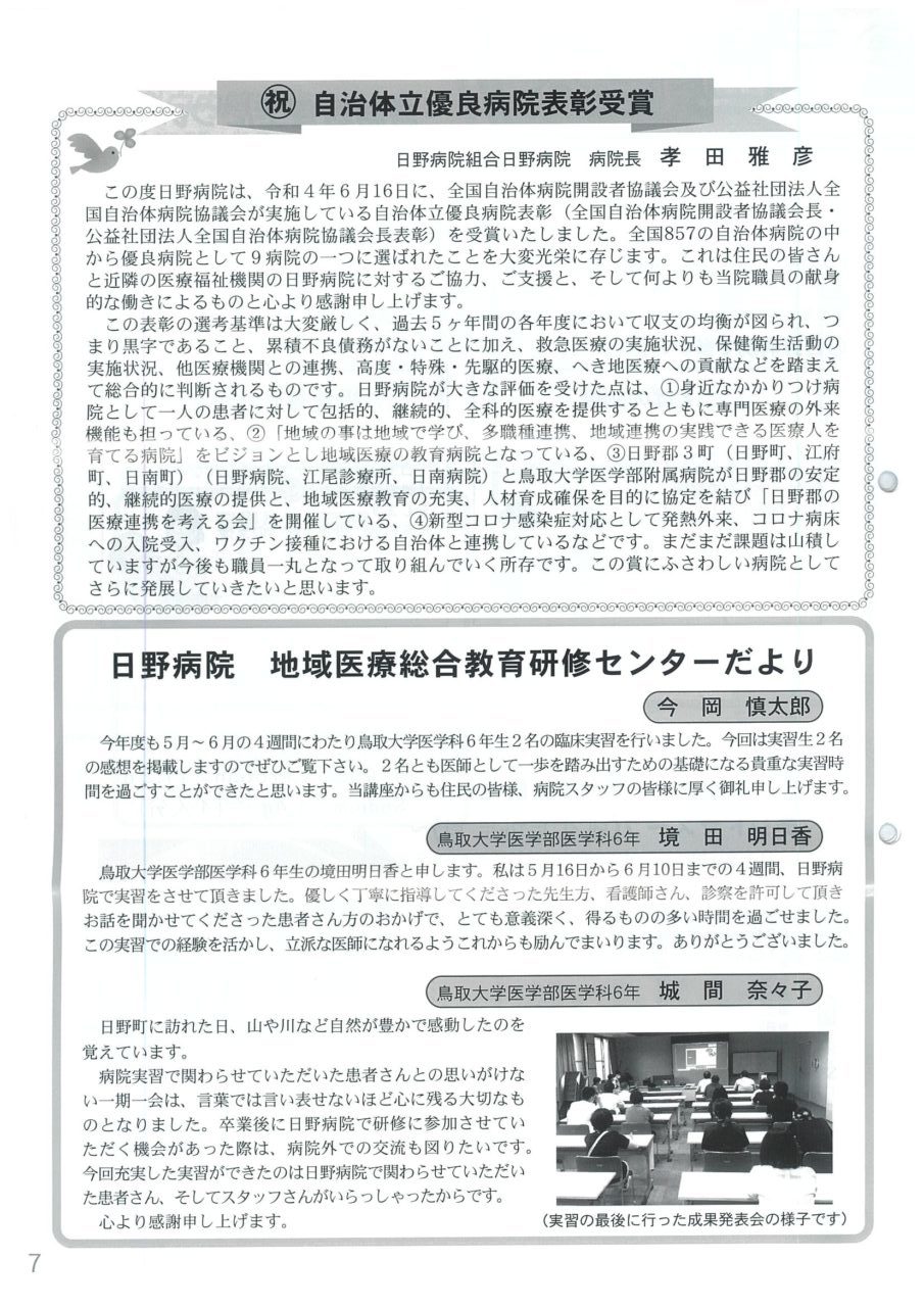 Home / Blog / 日野病院組合だより せせらぎNo・75に掲載されました。