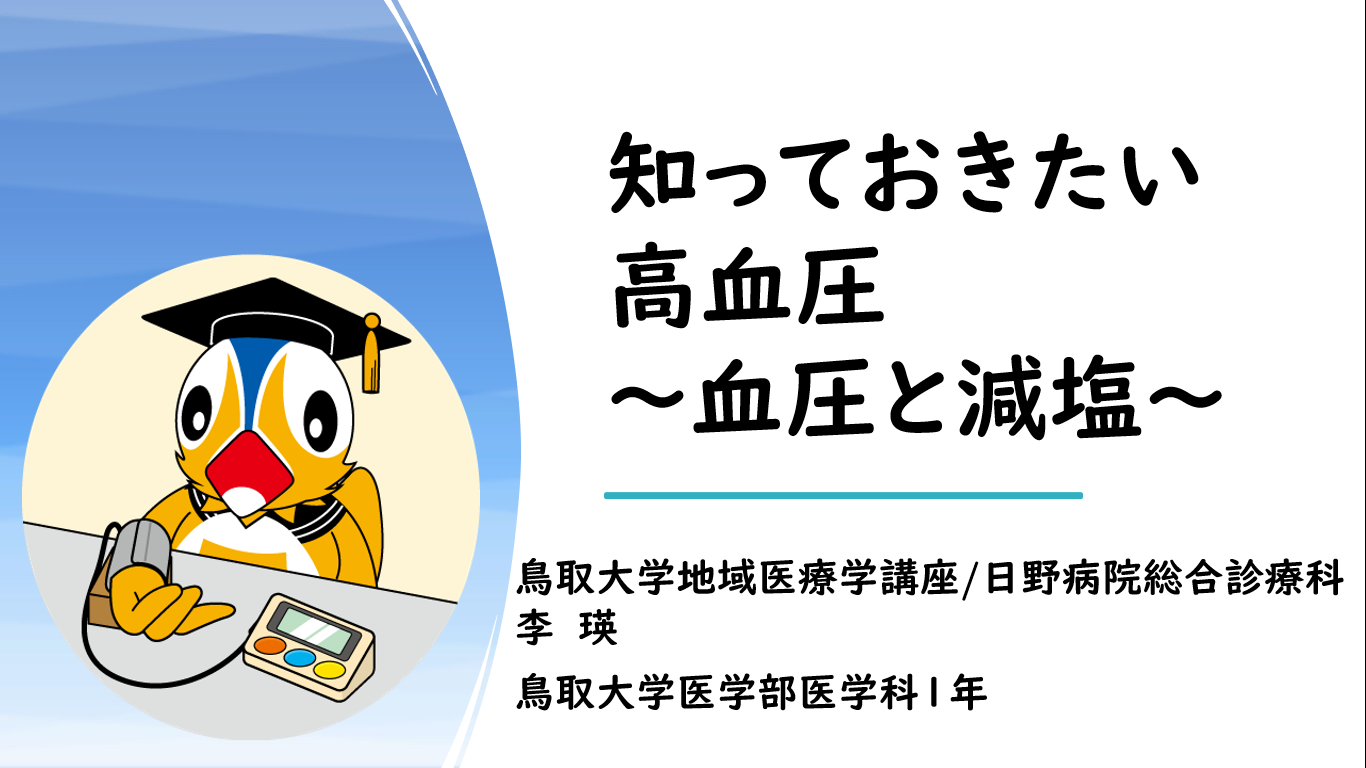 11月11日に日野町の食育サポーターの皆さんに対しての健康教室を開催させていただきました。この健康教室は、医大の学生さん(1年生)2人と一緒に半年ほどかけて準備をさせてもらいました。コロナ禍ということもあり、対面ではなくオンラインで何回も打ち合わせをし、どういうニーズがサポーターの皆さんにはあるだろうか、どういうテーマでお話をするのがいいだろう、ということを話し合い、今回は高血圧と減塩についてのお話をさせてもらいました