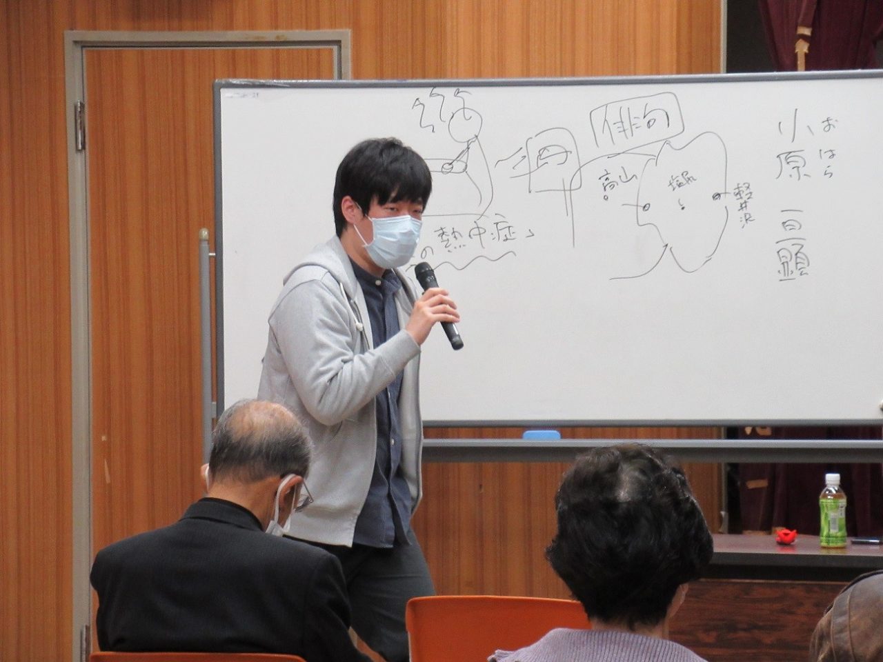 今回の講演を通じて、フレイルの重要性や日常生活の中でちょっとずつできる予防策について、参加者の方々に学んで頂ければ何よりと思います。また、黒坂や根雨の様な中山間地の集落でさえ、コロナ禍の影響もあり、人と人との繋がりが希薄となっている事が改めて感じられ、地域全体でフレイルを防ぐ取り組みの難しさも感じる事ができました。