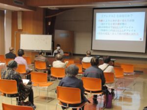 講師として喋ってみると60分間という時間が想像以上に短く感じられ、駆け足になったなぁ…と反省していましたが、参加者さんに「今まで『フレイル』について様々な講演で聞いたけど、今回が1番わかりやすかった」と言って頂き、「良かった~」と思いました。