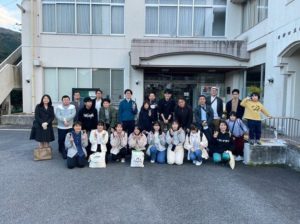 2022年11月3日に、医学部医学科学生、保健学科学生と、YMCAの学生の約20人と教員が、日野町黒坂地区のフィールドワークを行いました。8月に続き、2回目となります。