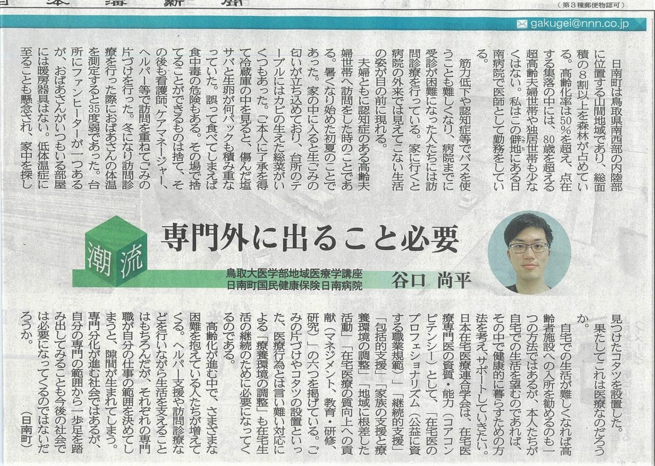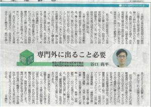 202月 2023 日本海新聞【潮流】に掲載されました。 2023年2月19日(日)日本海新聞 15面 潮流 に掲載されました。 ~専門外に出ること必要~ 谷口 尚平 BY tottori-idai-main 0