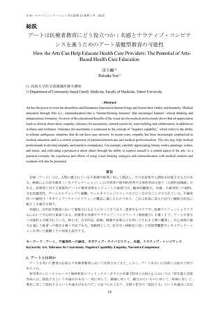 - 映画や絵画などアートを用いた医療者教育は、共感(エンパシー)や不確実性への耐性などプロフェッショナリズムの涵養につながる